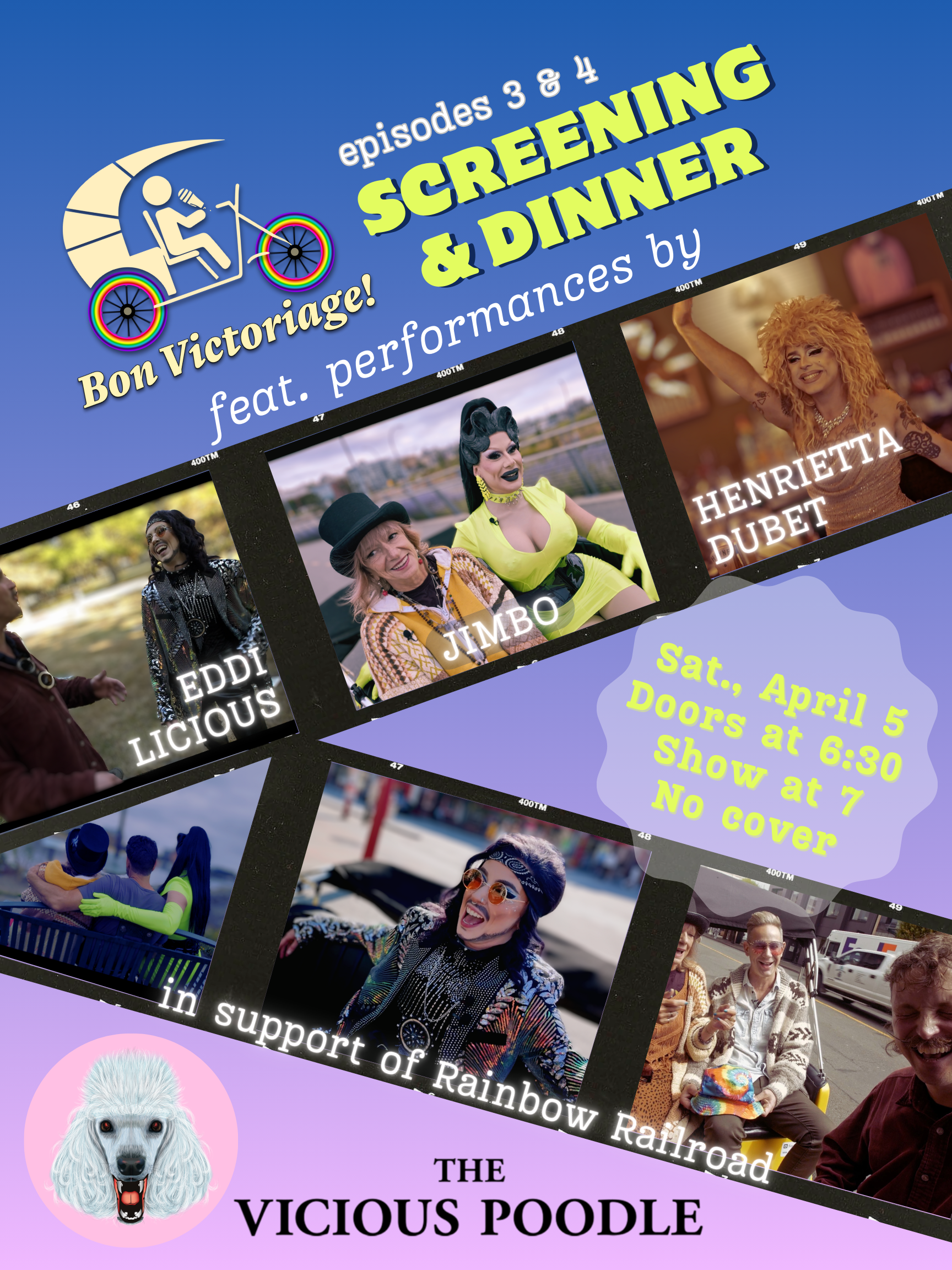 Community screening for Episode 8, The Journey Behind the Journey. 7-10 p.m. Doors at 7 p.m. Sliding scale, $10-20 suggested donation, no one turned away. All net door proceeds go to production for Bon Victoriage Season 2!
